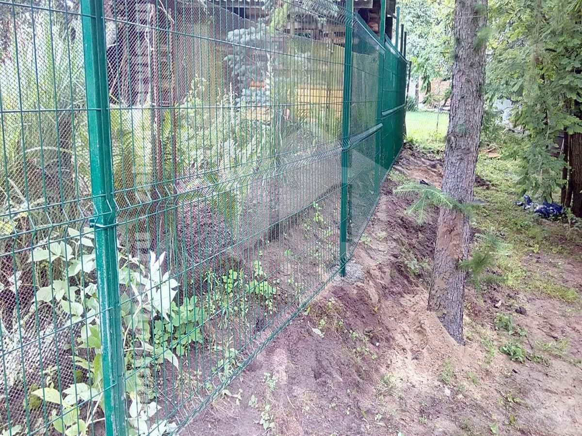 При монтаже, каждая секция 3D-забора крепится к несущим столбам с использованием входящих в комплект, хомутов или скоб. Эта технология позволяет быстро оградить даже большой участок буквально за один день, сохраняя надежность и прочностные характеристики конструкции.