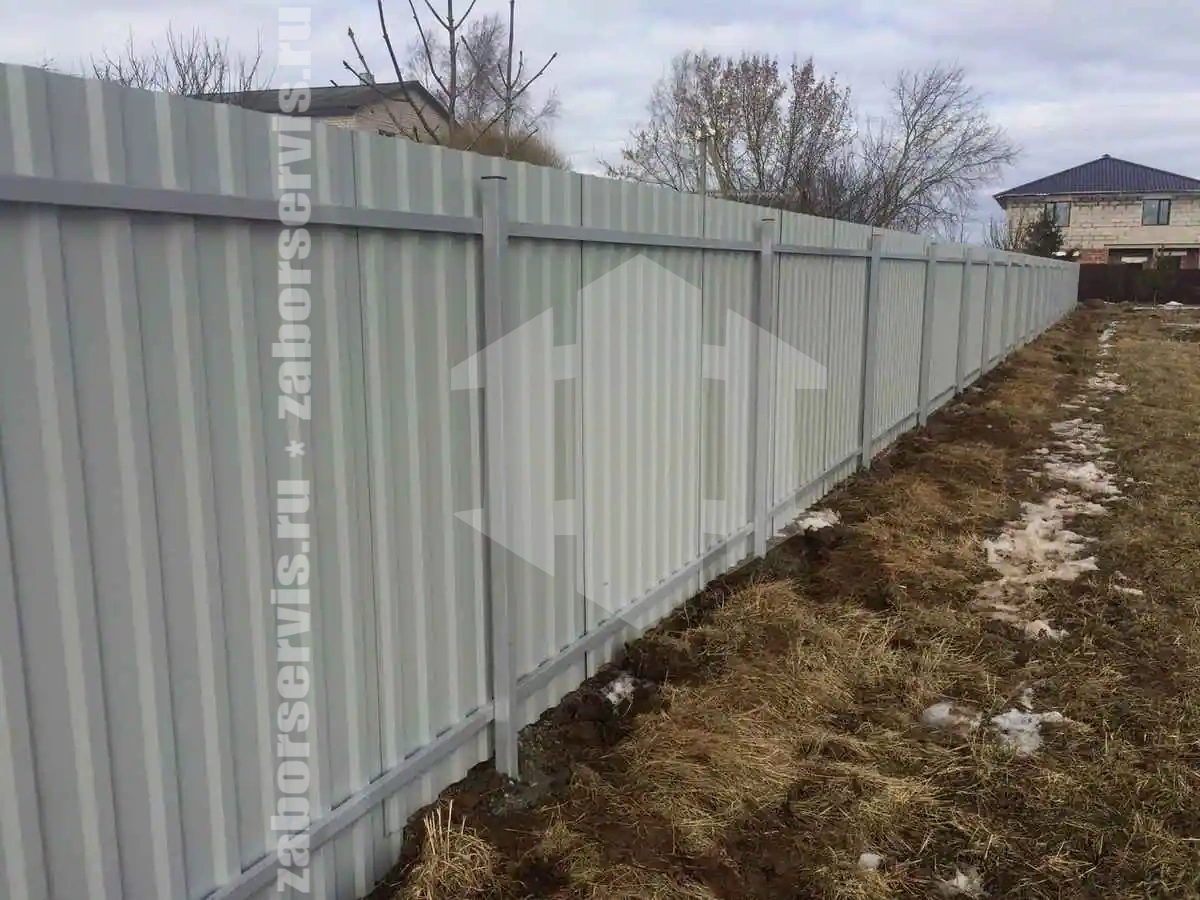 Если не брать во внимание процедуру согласования, то на монтаж 35 метров забора из профнастила понадобится один дней. Все материалы для выполнения есть всегда в наличии.